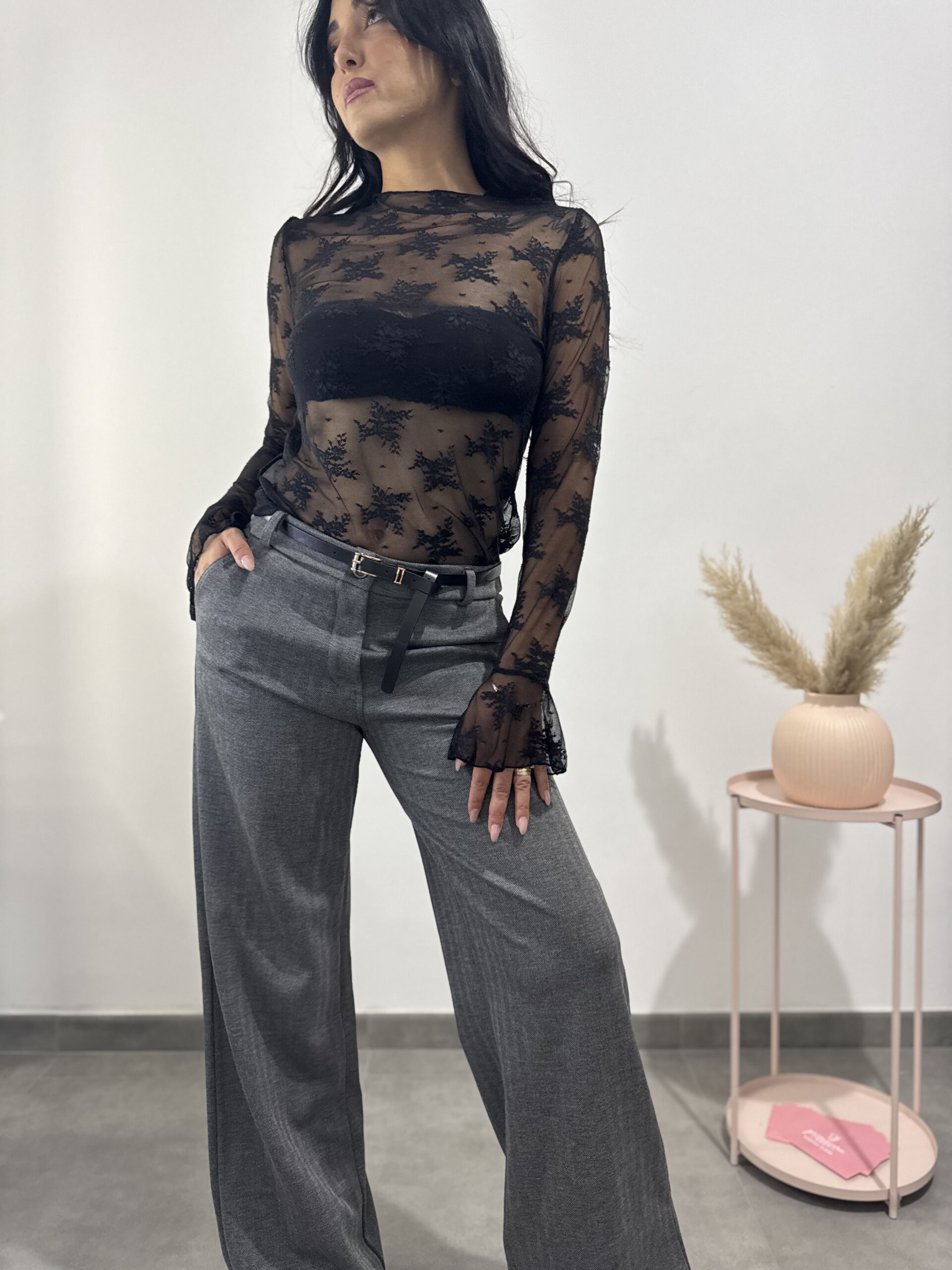 AME - Maglia in pizzo nera