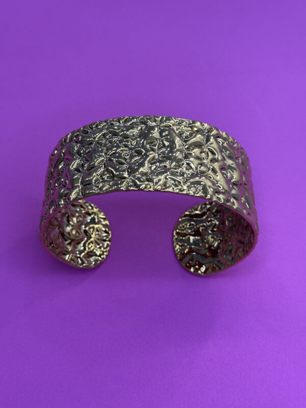 Bracciale bangle spesso, dorato, rigido e regolabile con ricami. Arricchisce i tuoi outfit con eleganza e stile!