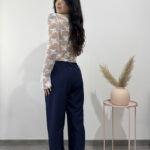 Maglia velata in pizzo a maniche lunghe polsini a volant.