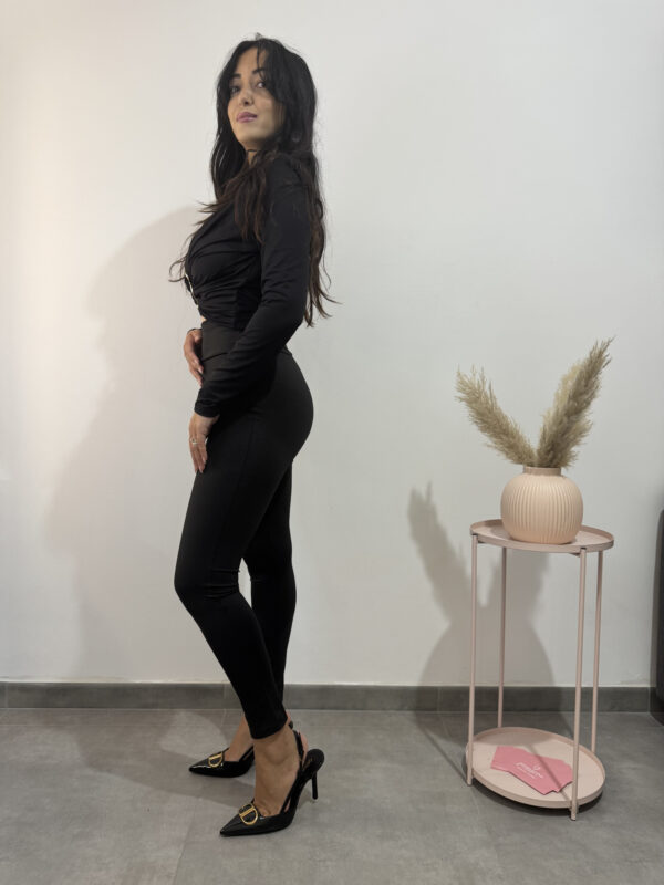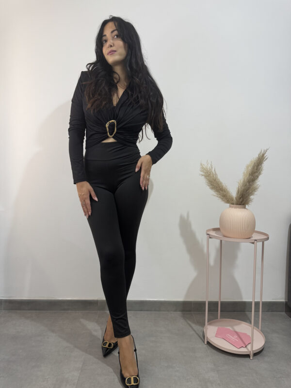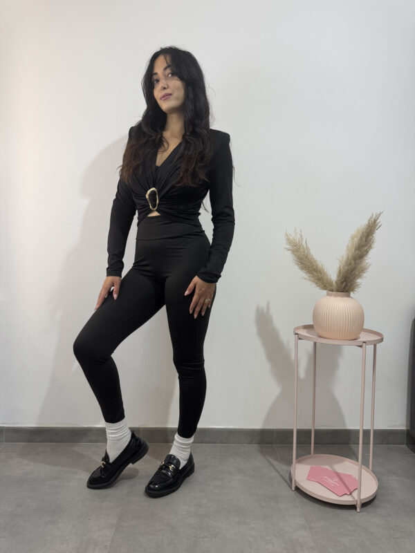 top corto a maniche lunghe con fibbia dorata.