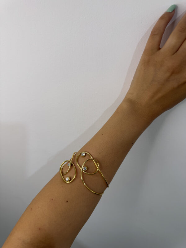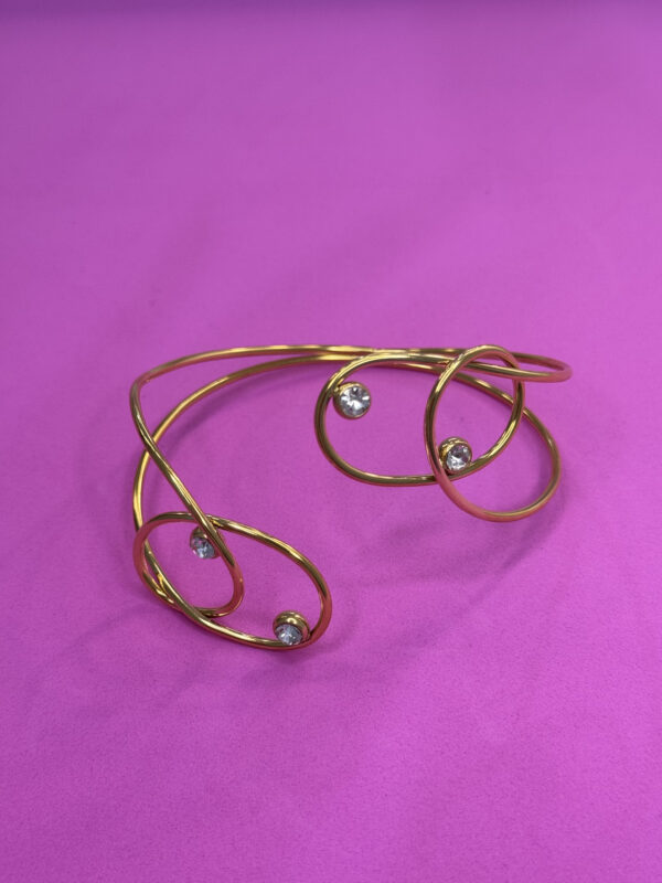 Bracciale bangle dorato rigido ma regolabile con strass. Illumina i tuoi look con un accessorio raffinato.