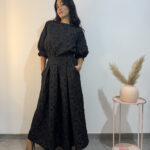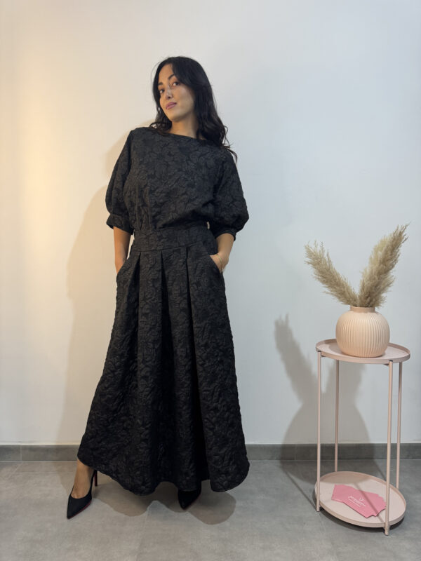 gonna lunga a palloncino con pieghe con tasche tessuto damascato.