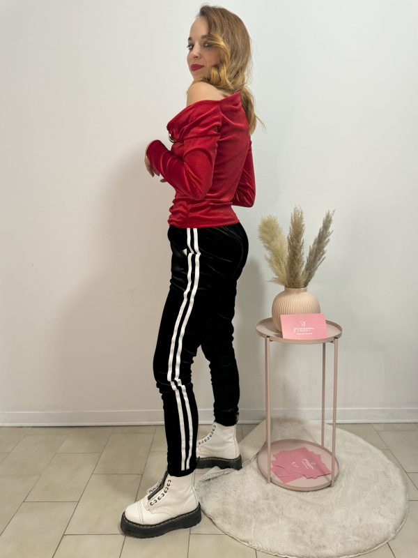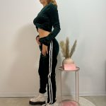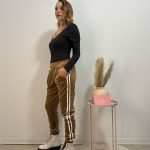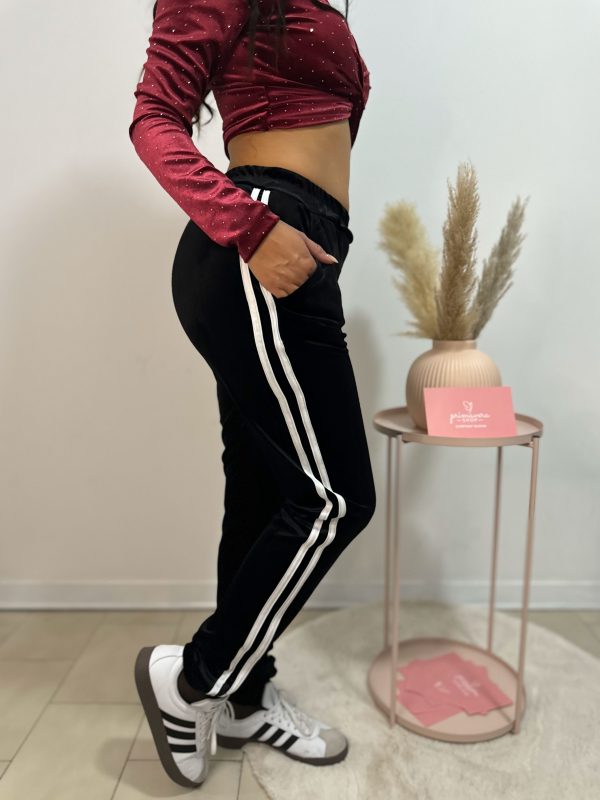 Pantalone joggings stile Adidas, in ciniglia, con tasche ed elastico in vita