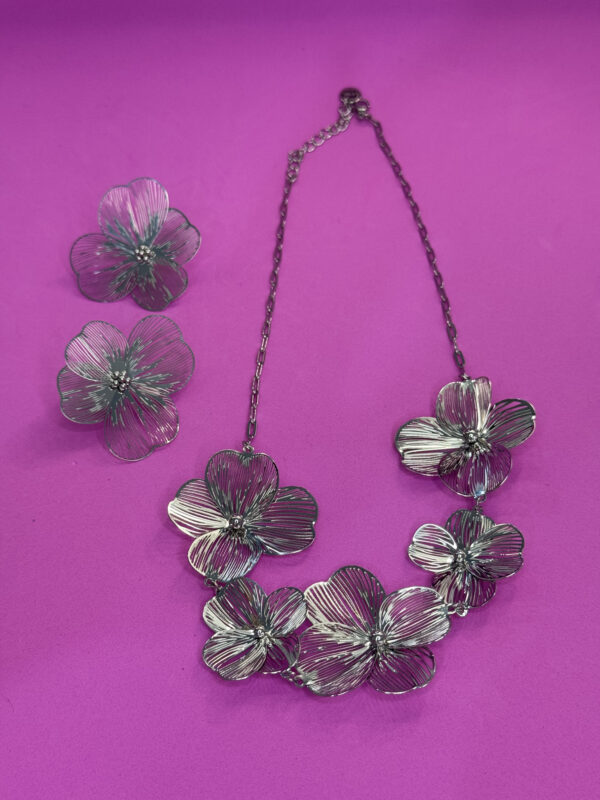 Collana chiccosa argentata con delicatissimi dettagli floreali, regolabile.