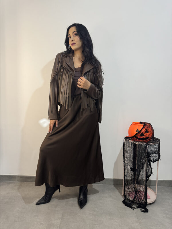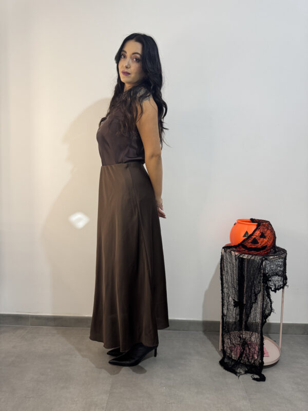 Gonna lunga in tessuto satinato liscio con elastico in vita.