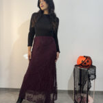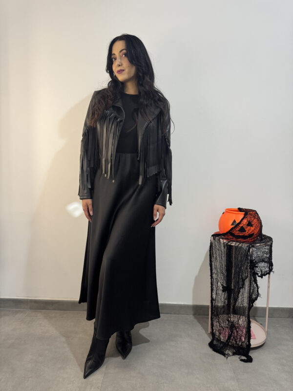 Gonna lunga in tessuto satinato liscio con elastico in vita.