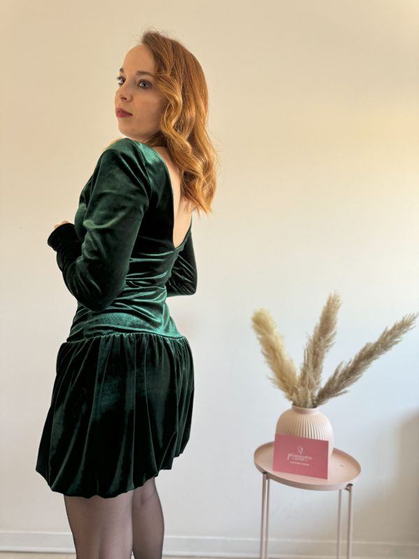 Grazioso abitino in ciniglia a maniche lunghe con spalline, scollato dietro, gonna a palloncino