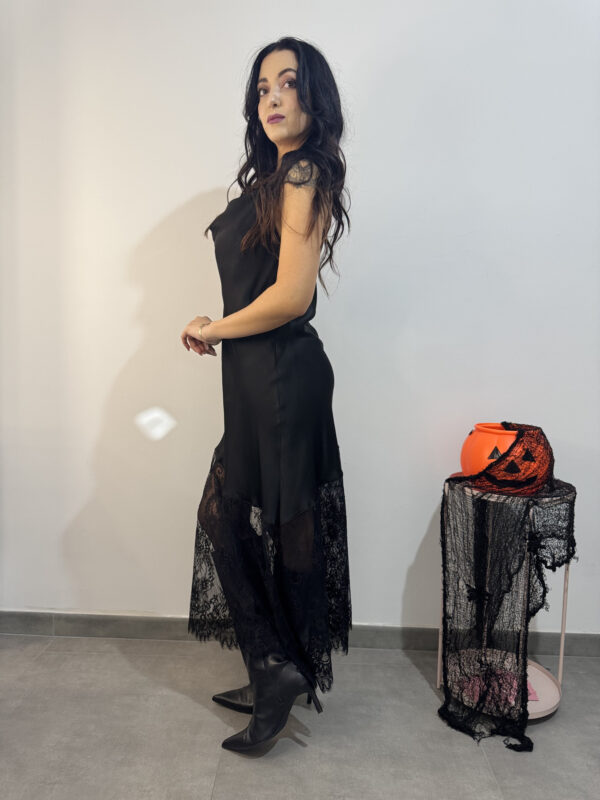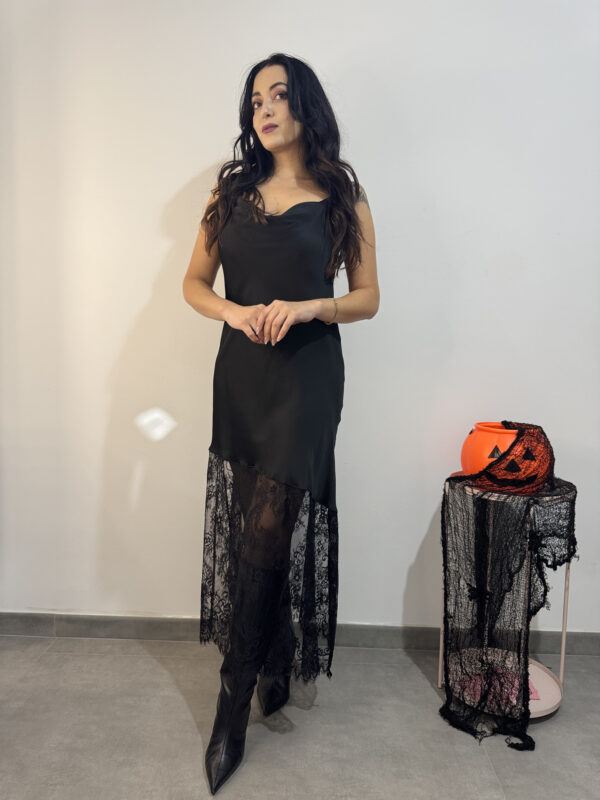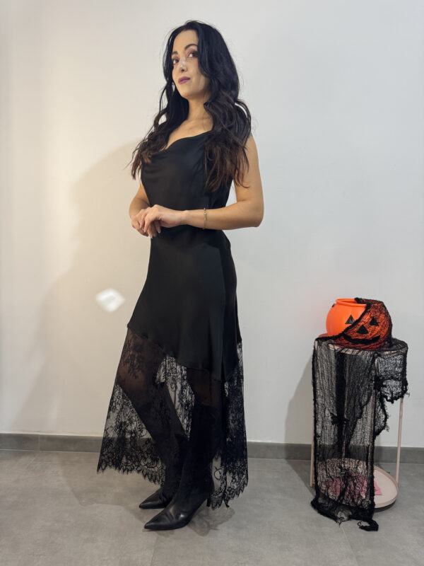 MORTICIA – Abito satin/pizzo