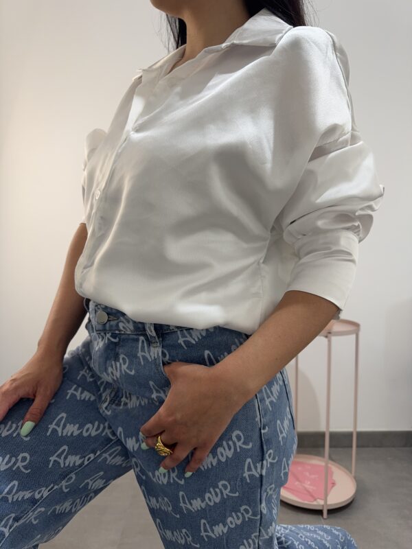 Camicia morbida bianca tessuto liscio manica ampia. Must have di tutte le stagioni, indossala in qualsiasi tuo outfit!