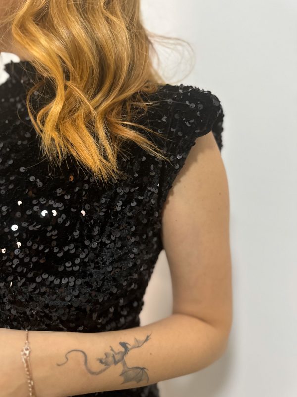 Abitino corto da festa smanicato con spalline collo alto impreziosito da paillettes