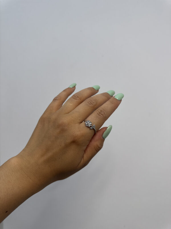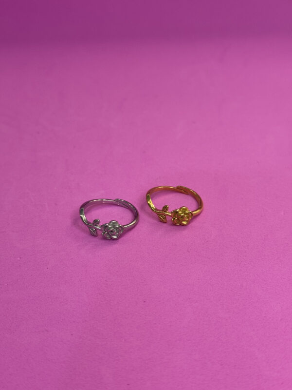 Anellino argentato con dettaglio rosellina, graziosissima fedina regolabile.