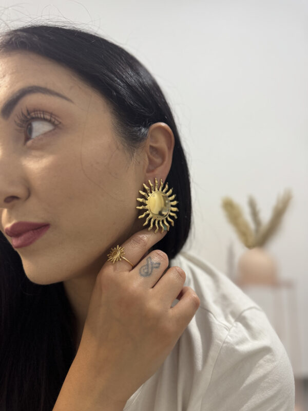 Orecchini dorati grandi a forma di sole. Per un look moderno che non passa inosservato!