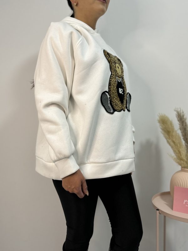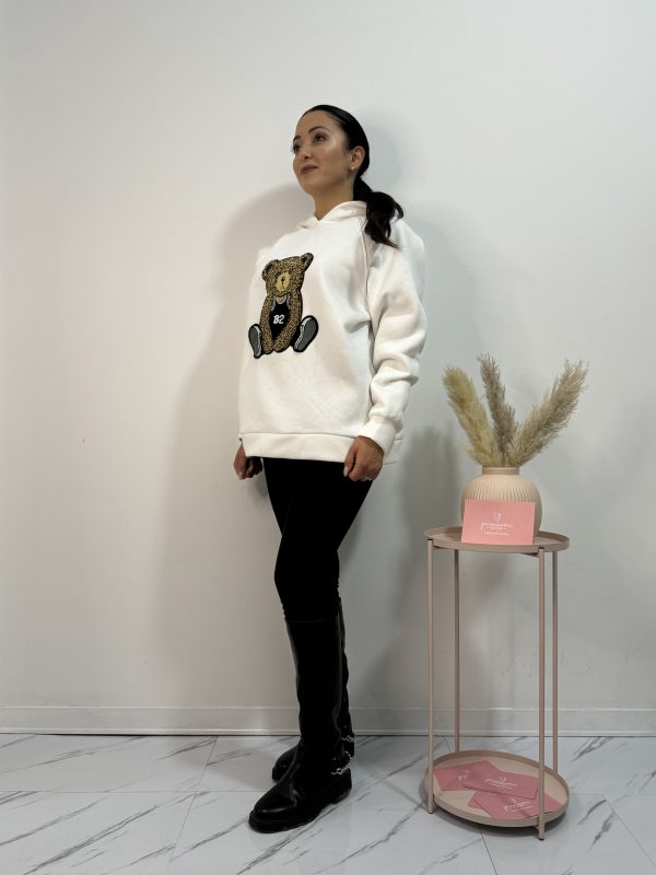 Bellissima Felpa over super calda felpata all’interno con cappuccio dettaglio Teddy davanti