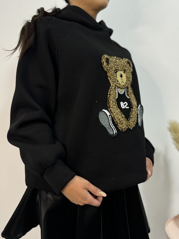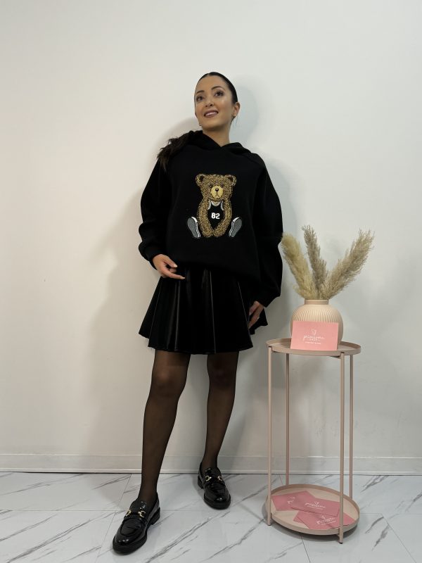 Bellissima Felpa over super calda felpata all’interno con cappuccio dettaglio Teddy davanti