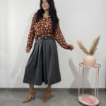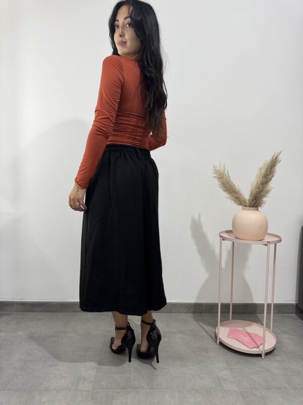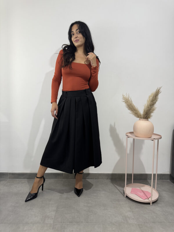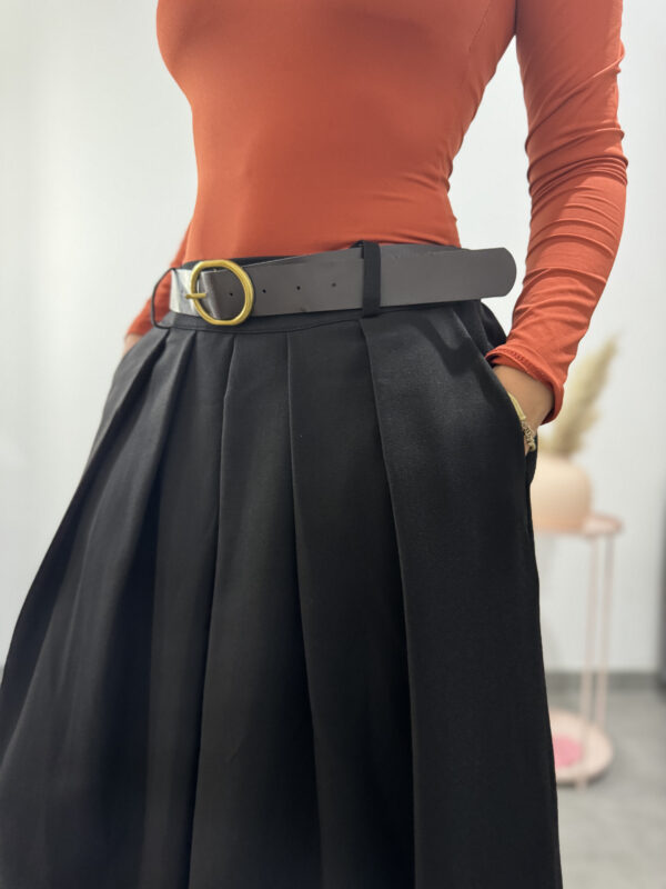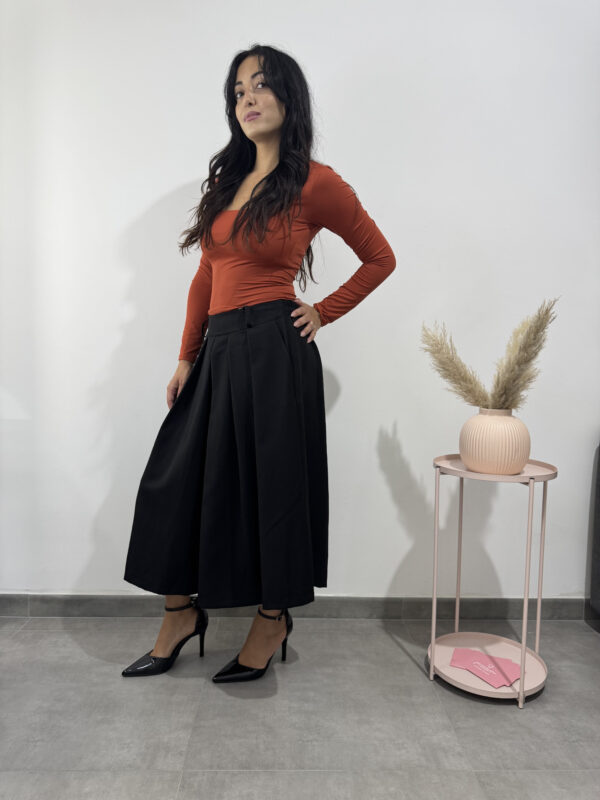 Pantagonna crop wide con pieghe. color nero con cinta marrone.