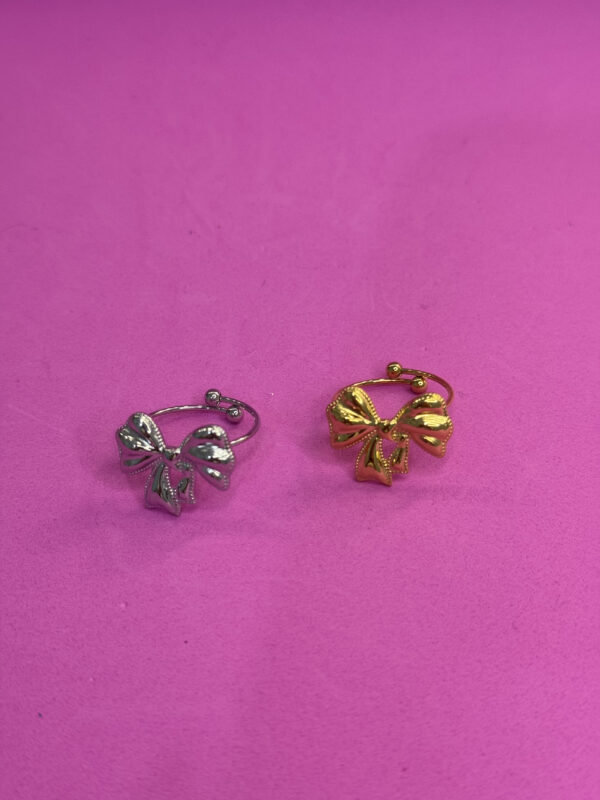 Graziossima fedina dorata regolabile con dettaglio fiocco.