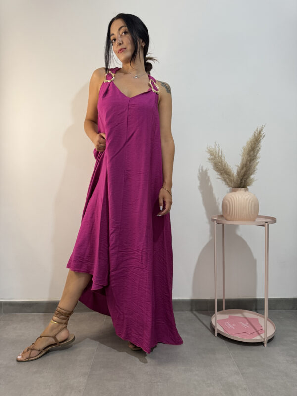Abito estivo elegante e raffinato, lungo ma molto fresco accompagna le tue giornate estive e le tue serate al mare. Bellissimo colore mette in risalto la tua abbronzatura!